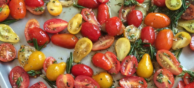Remove the chicken from the oven when it has reached the wanted temperature and let it rest for a few minutes before slicing it. Arrange on a plate together with the salad and a piece of warm home baked foccacia bread.
