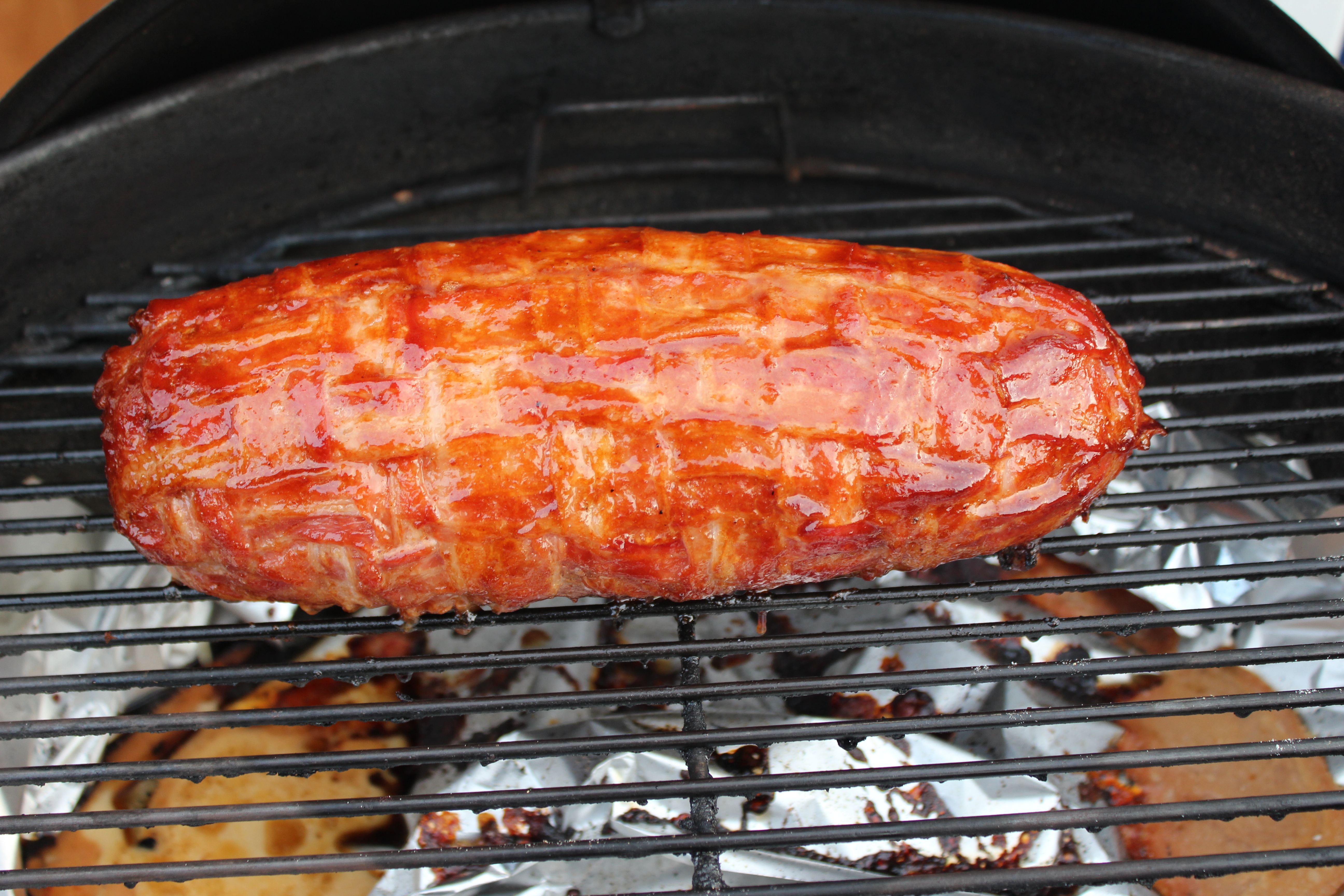 Place on indirect heat on the grill and grill it at 360F for approximately 90 minutes. Toss a piece of wet applewood into the charcoal to give it some smoke.
