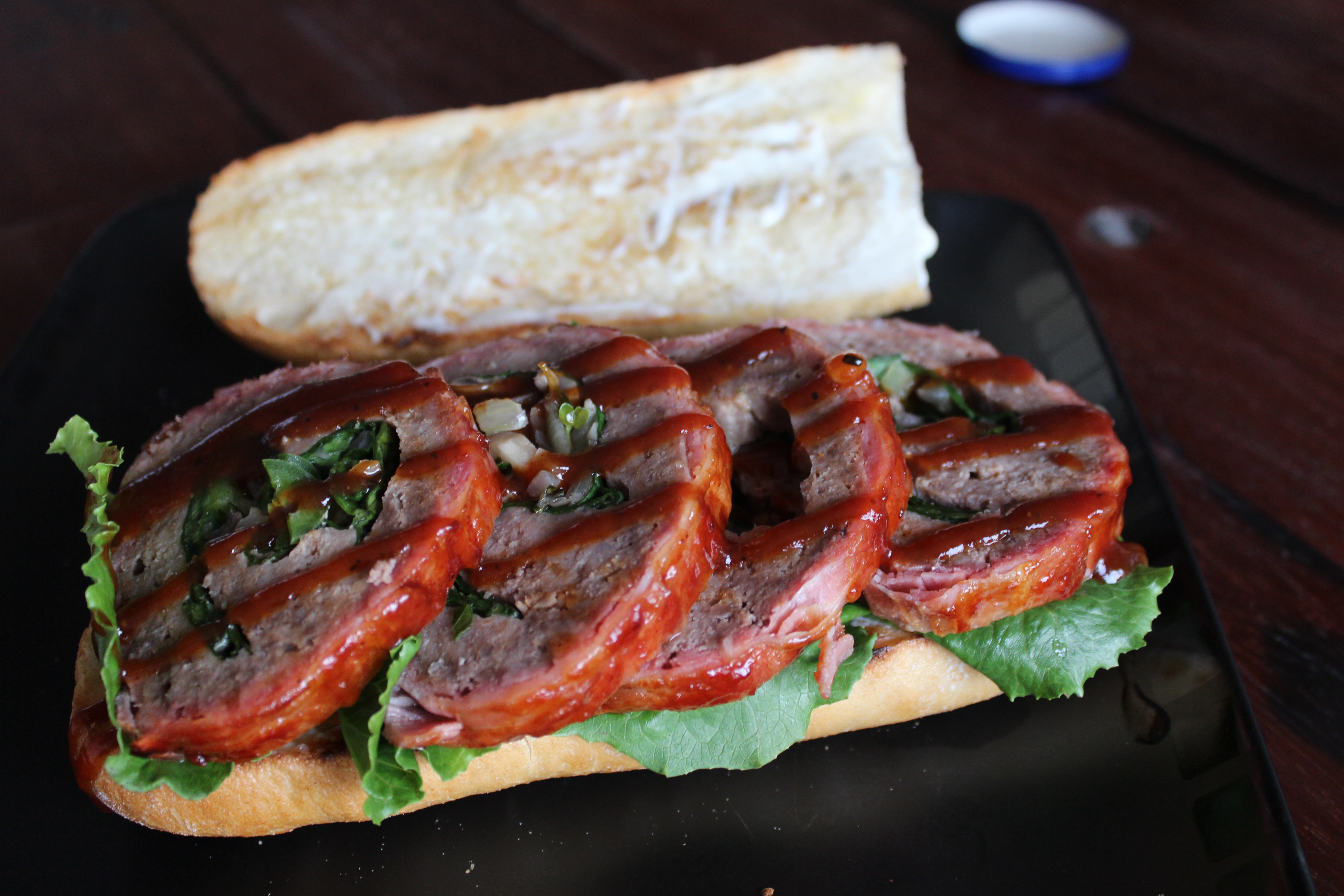 Combine grounded beef and pork in a mixing bowl together with 1/3 cup BBQ sauce and salt and pepper. Place the meat on a piece of baking paper when mixed well. roll it out until it is approximately 2 inches smaller than the bacon wrap.