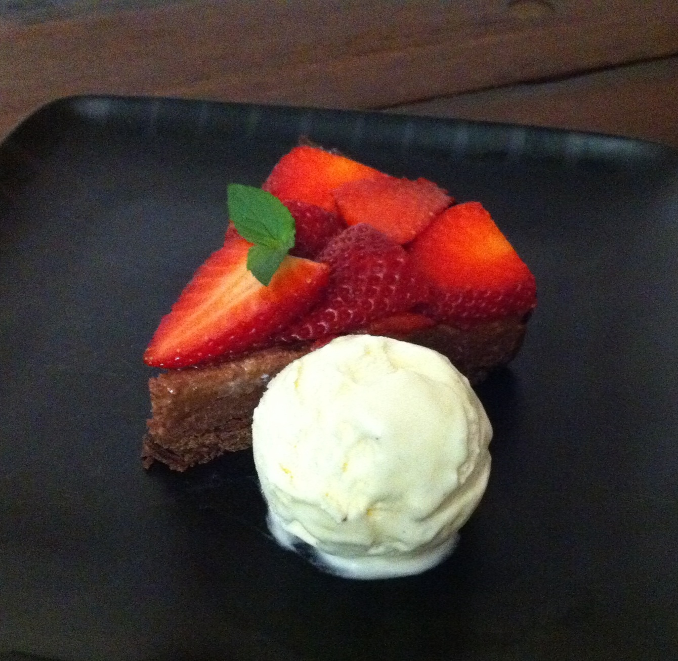 Even though the freezer and pantry is almost empty, there is still one ingredient that I have dozens of: CHOCOLATE. I always have lots of chocolate in the house, so that I can create delicious chocolate dreams all day and night if desired π And today has been one of those days where I just wanted to celebrate the existence of world class chocolate, and bake something delicious and pretty for tonights marriage date! Thankfully I haven’t sold my pie dish yet, and I therefore decided to make this fabulous (and pretty) chocolate praline tart with strawberries. If you have trouble finding good strawberries, you can use other berries like raspberries or blueberries. Tonight I’ll serve the tart with a scoop of creamy home made vanilla ice cream, but but you can also serve it with sour cream or just as it is π