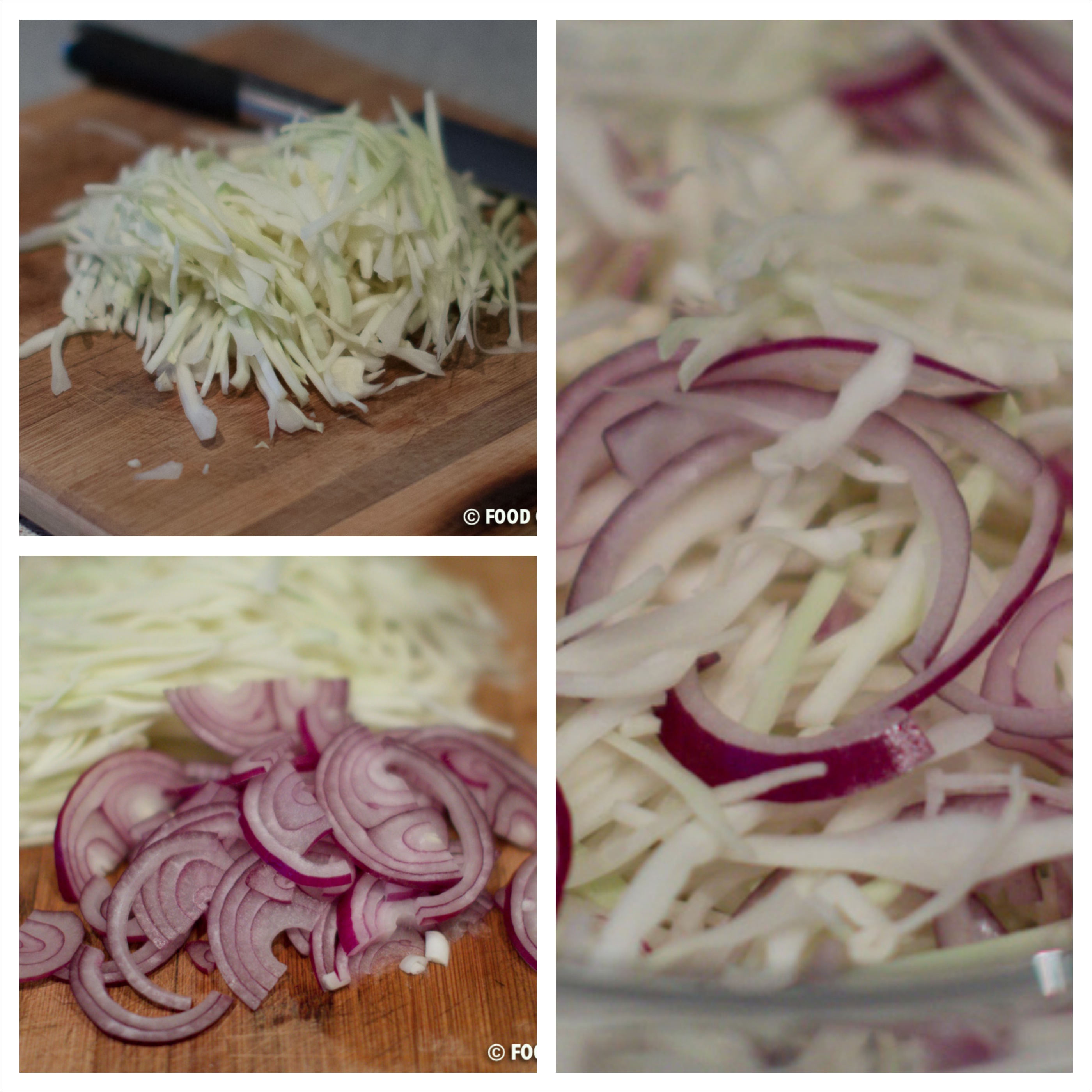 Cook the sliced cabbage in salted water 12 minutes. Transfer to a colander and let the water drip of.