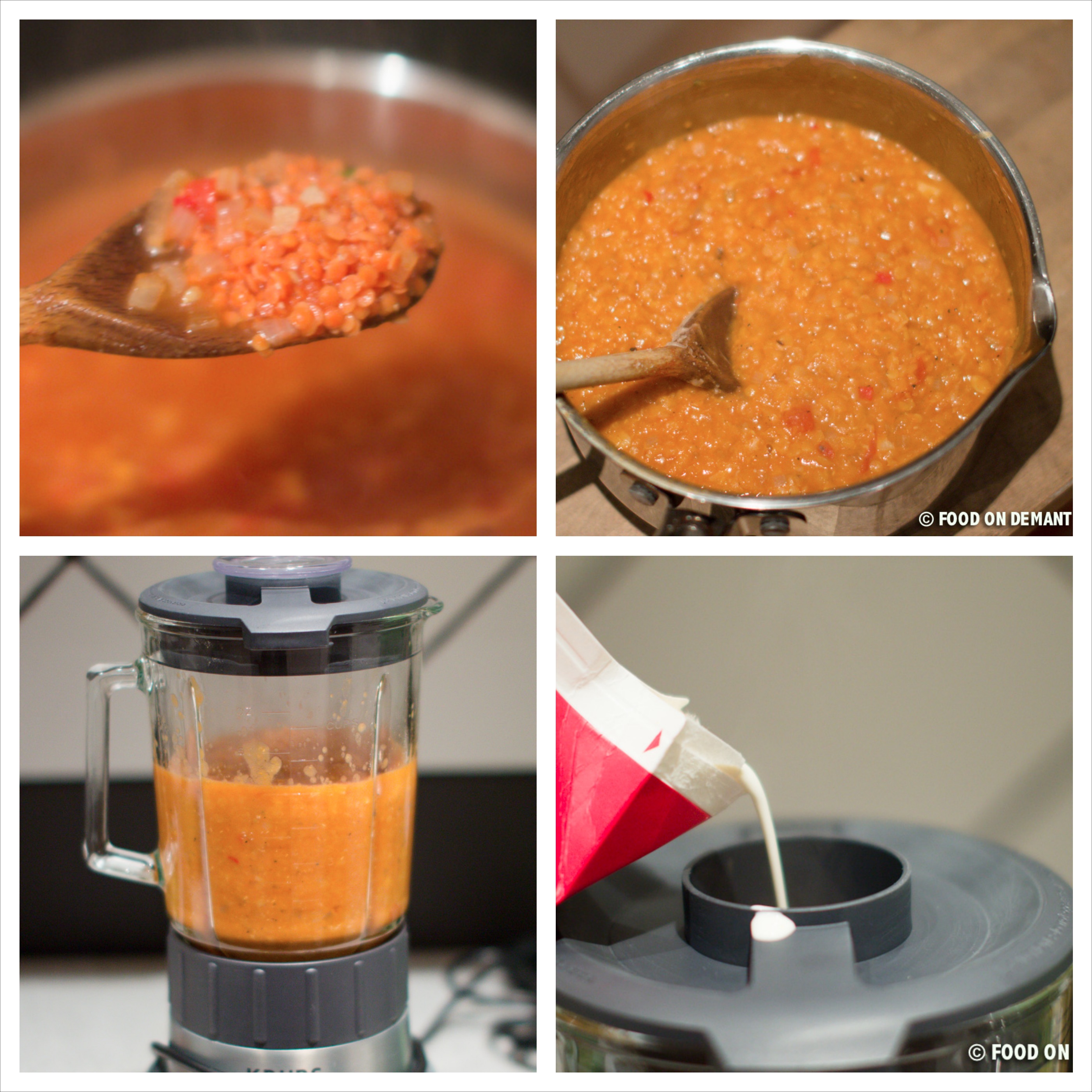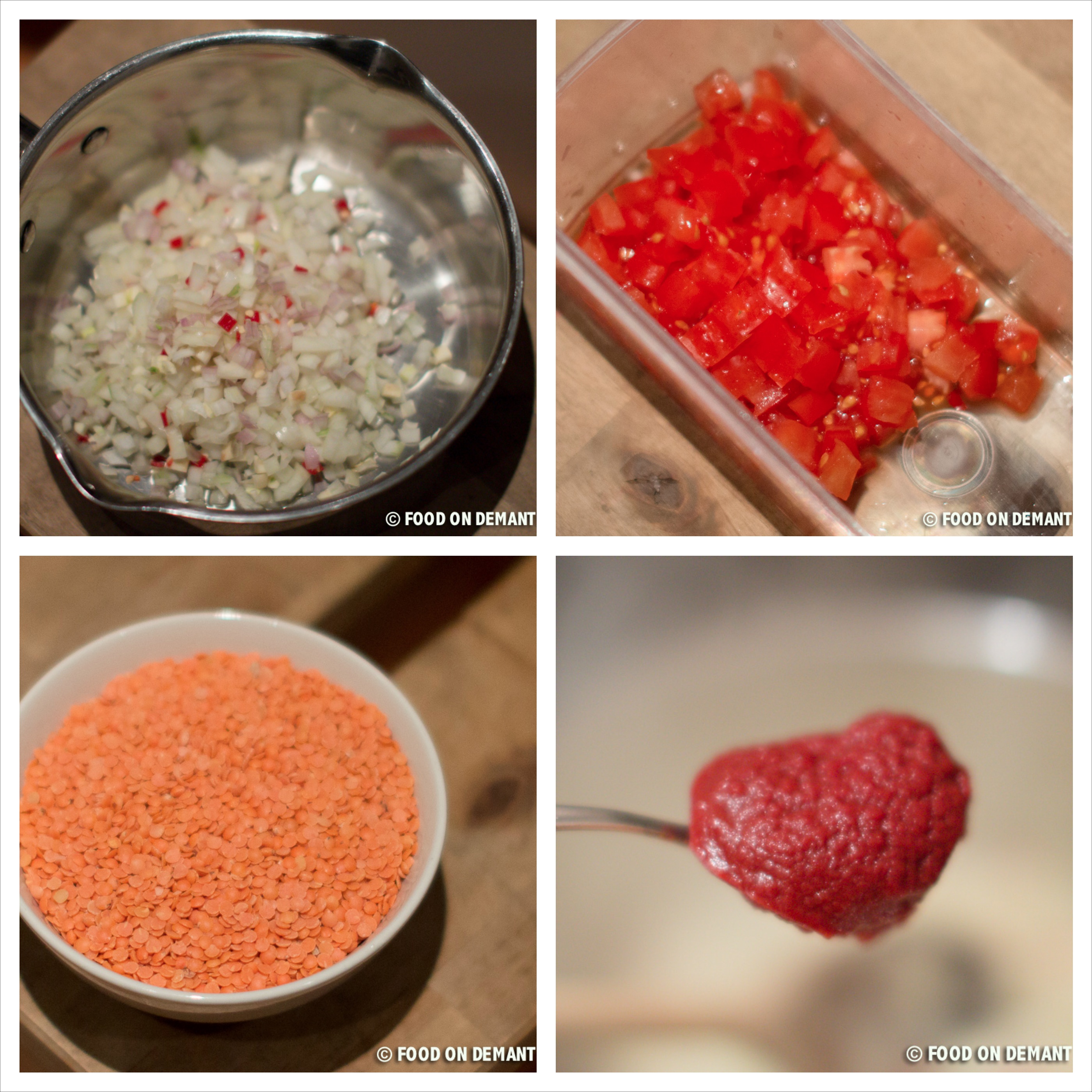 Cut the brussels sprouts in half and slice them. Clean and slice the pepper bell and red onion too. Add all three to a mixing bowl and use your fingers or two forks to combine it.