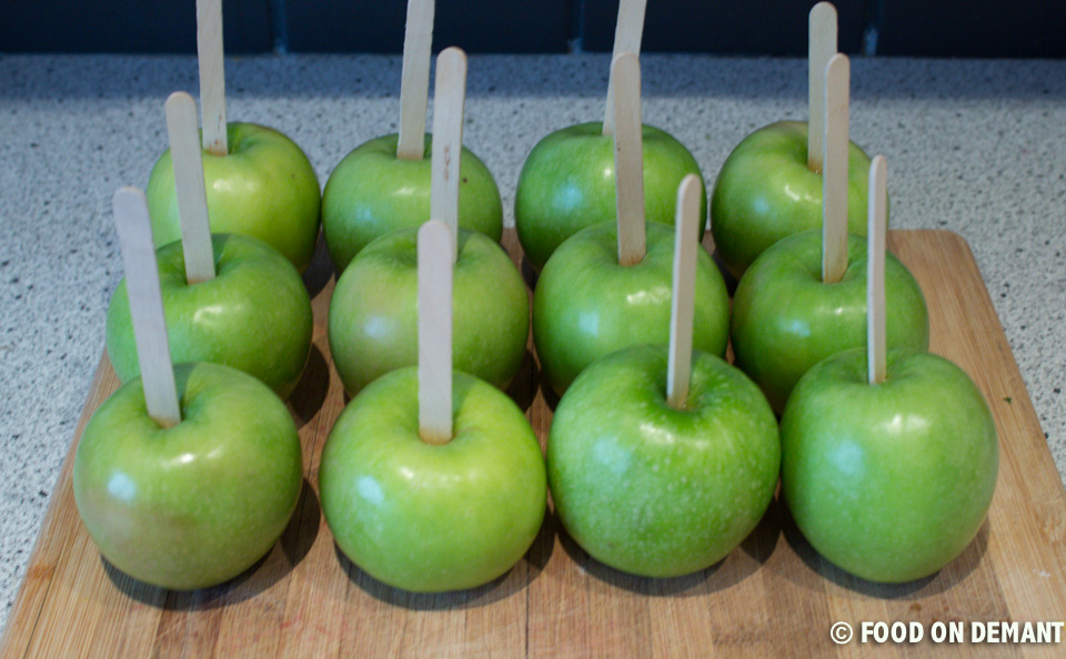 It is quite sticky (but sooooo delicious) so next we will definitely use some longer wooden sticks so it gets easier to eat the apple directly from the stick instead of cutting it in smaller pieces ๐